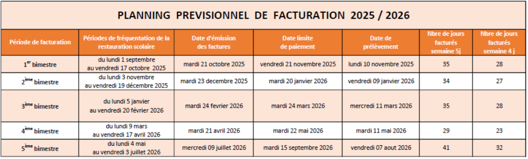 Les tarifs des repas sont valables du 1er septembre au 31 août.